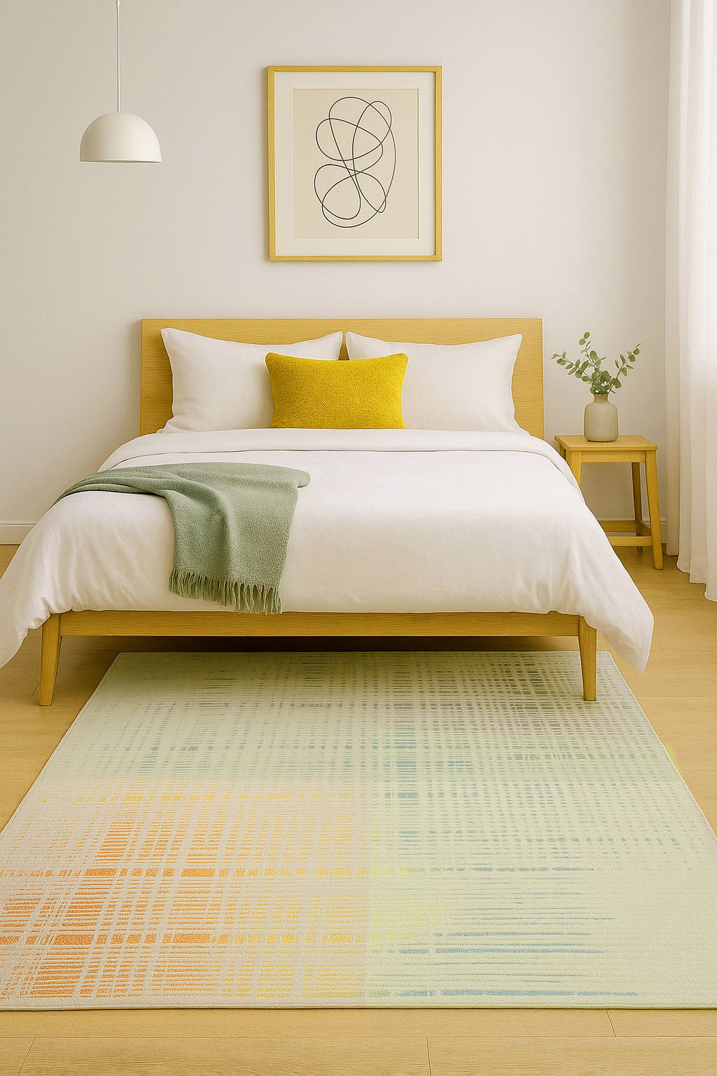 • An interesting twist on classic check design. This artistic machine-woven rug displays brilliantly-hued bands combined with various shades of Grey to create a celebration of colour, pattern, and modern style.