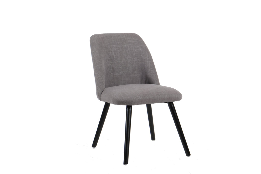 • Add this chair to your Dining Room for a contemporary look. Its frame is made of metal and features a 120 kg weight capacity. Curved back which gently cradles your back as you sit. Foam padding and Grey polyester-blend upholstery offer a bit of cushioning as you sit, and the legs have a Black finish. Chairs are packaged and sold in sets of (2) chairs per box.