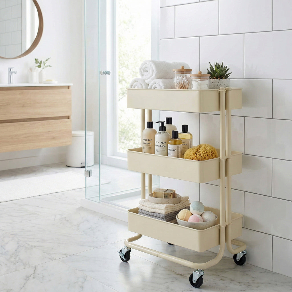 Lena 3-Tier Storage Rolling Cart, For Office/Beauty Salon/Home,Vanilla