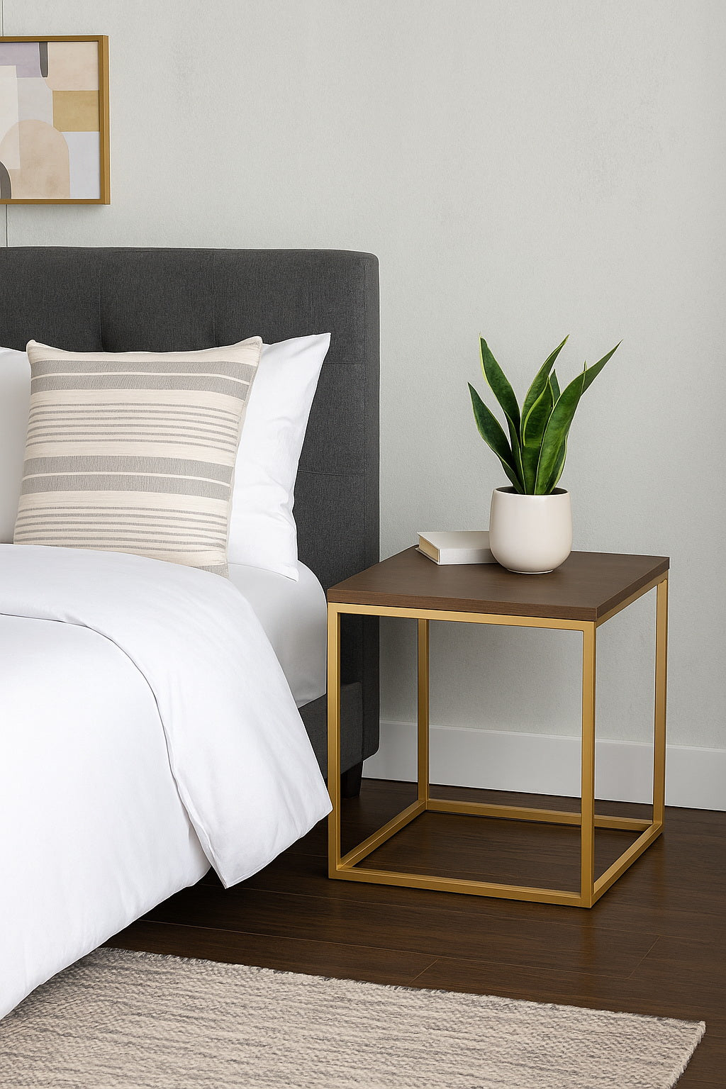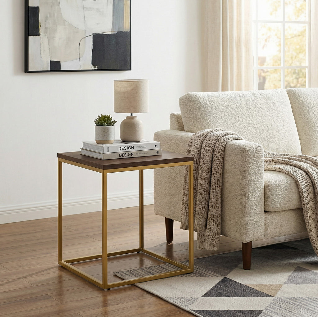Regis Side Table/ End Table/ Nightstand (Walnut/Gold, 45 x 45 x 46(H) cm)